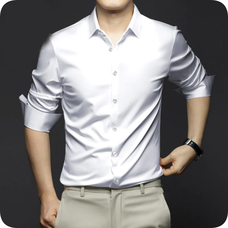 Aprimore seu guarda-roupa com a sofisticação atemporal da camisa social em seda gelo.